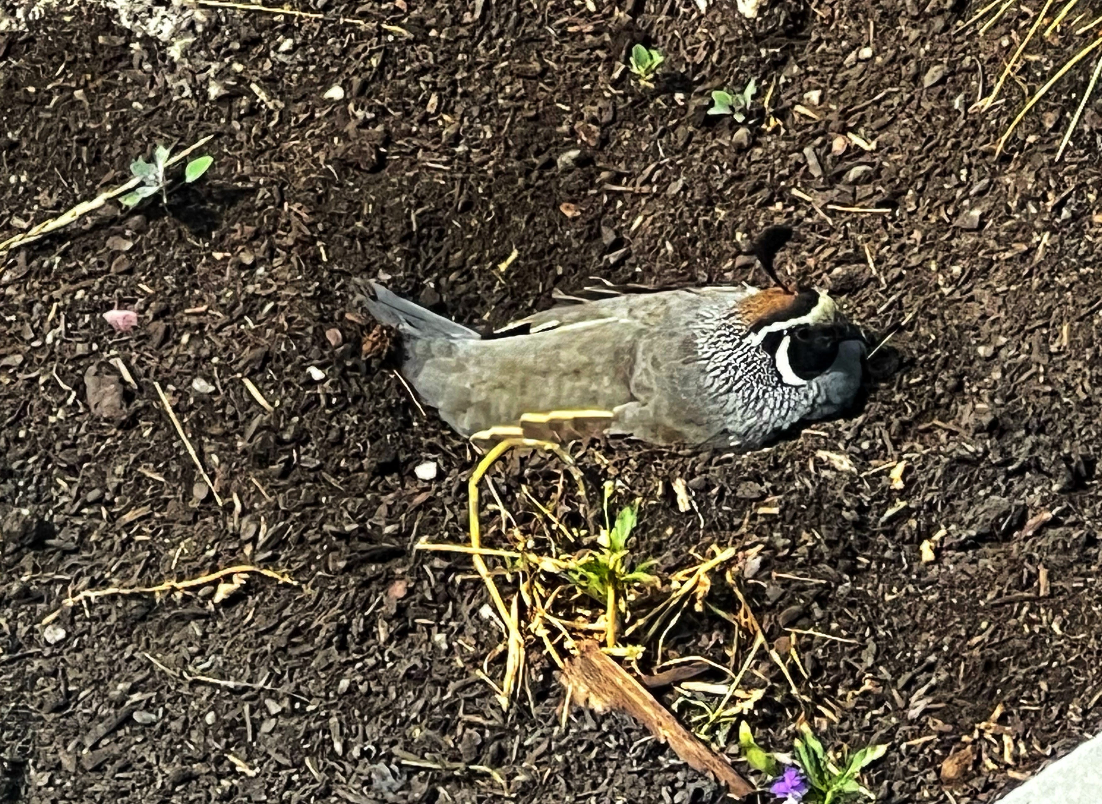 As my beautiful New Day slowly morphs from morning to afternoon, send a covey of Quails to visit. They will mumble and peep as they run from bush to bush, chortling and pecking, one after the other, always one more left to run behind and join the group, seldom giving in to flight, their tiny little quilled hat feathers jostling to and fro as they race to keep up. As spring begins to warm the soil, they will suddenly resemble small children’s toys loaded with fresh batteries and no off-button as they jump, toss, turn, dig, peck and roll in my small garden, their antics appearing to serve no other purpose than play, They jump upon each other, roll over upside down and play dead, only to surprise each other when they jump back to life. They appear to be here only to enjoy and celebrate their small, fluttering lives.