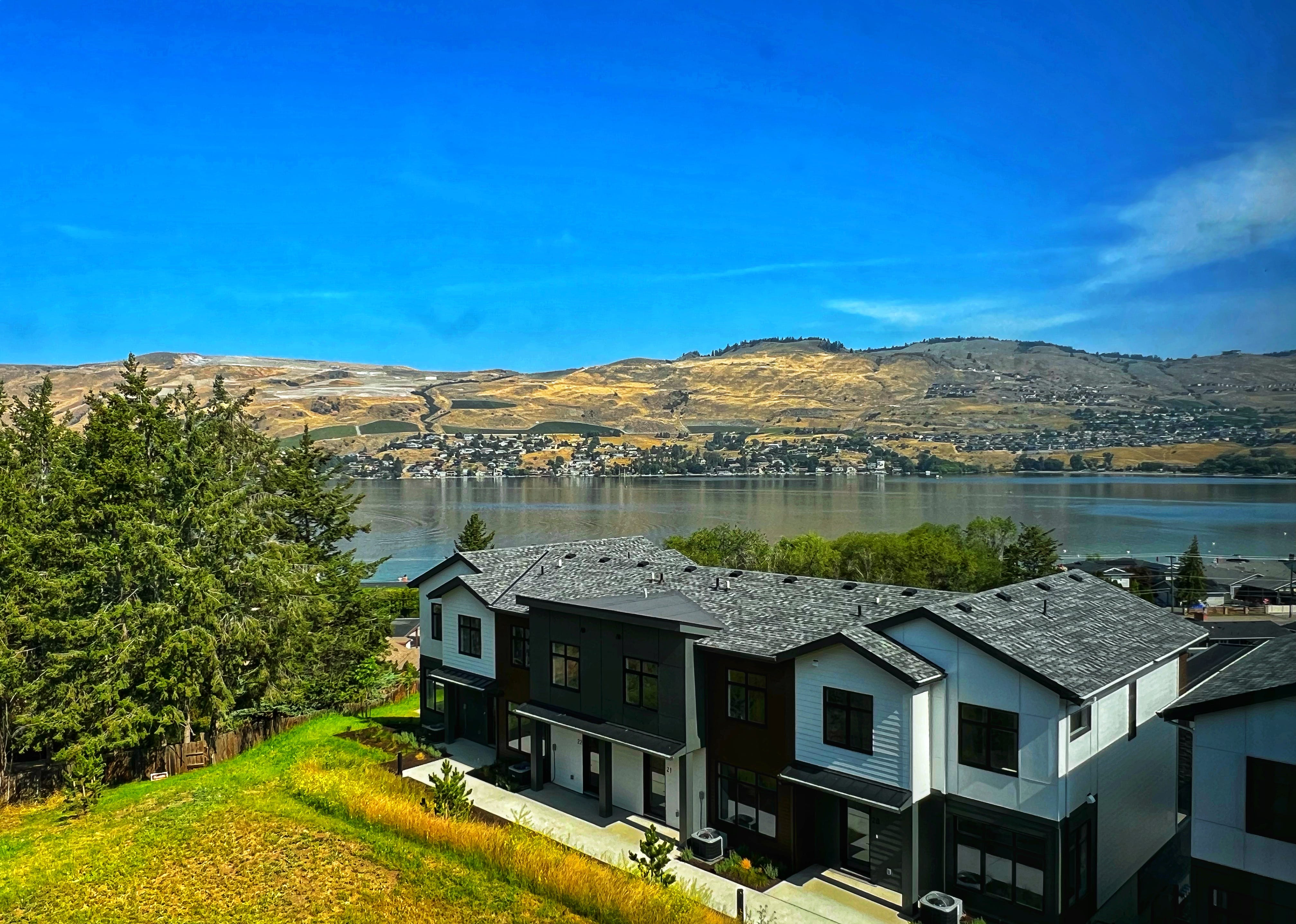 I want to see the deep sapphire-blue surface of Okanagan Lake glimmer in the near distance, sewn, as it is, to the russet foothills of the Cascade Mountain Range, a canvas stretched so smooth and tight that the blocks of vineyards and orchards dotting the sage slopes are reflected without flaw and the tawny pastels wash and mingle with the dappling blues.